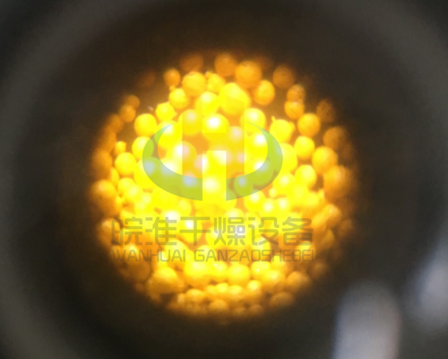 經(jīng)過前道工序處理后的料液進入螺桿泵送至干燥塔底部的造粒霧化器。噴頭將料液均勻地霧化為微米霧滴群,進入塔內(nèi)。常壓空氣進入加熱系統(tǒng),被加熱至工藝所需的溫度,經(jīng)熱風(fēng)管道,熱風(fēng)蝸殼、熱風(fēng)分配器均勻進入干燥塔上部,與霧滴群接觸后高溫固化,熱解成產(chǎn)品,干燥后的成品隨同尾氣經(jīng)出風(fēng)管送至旋風(fēng)分離器進行氣固分離